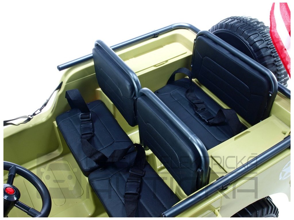 Elektrický vojenský Jeep Willys 4x4 24V trojmístný s 2,4G DO, vlajkou USA, LED osvětlením, EVA koly, macha army