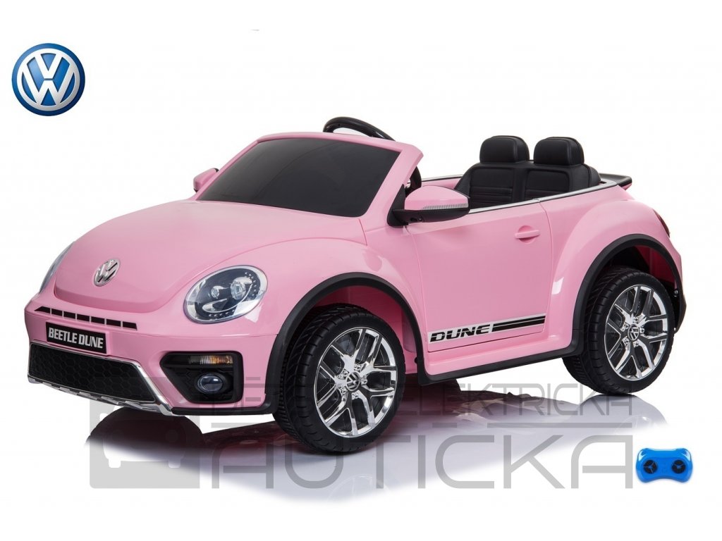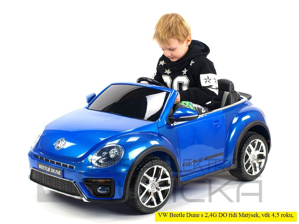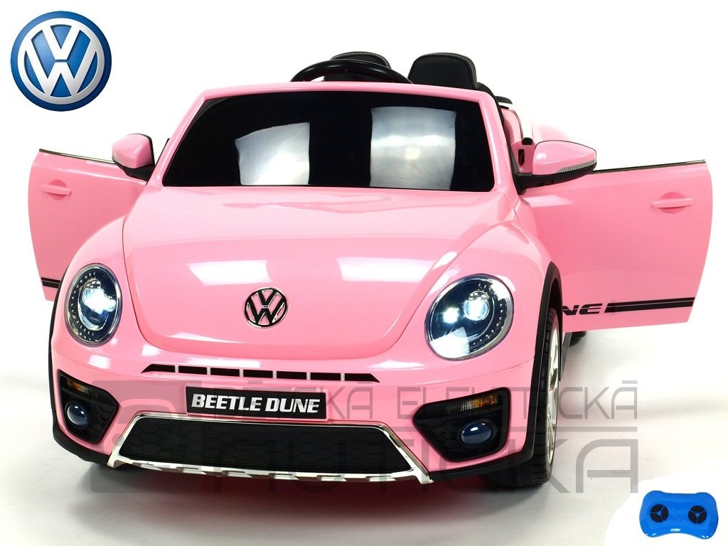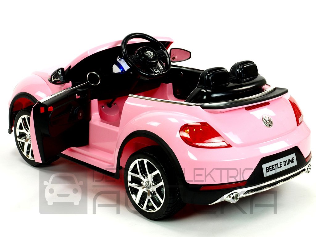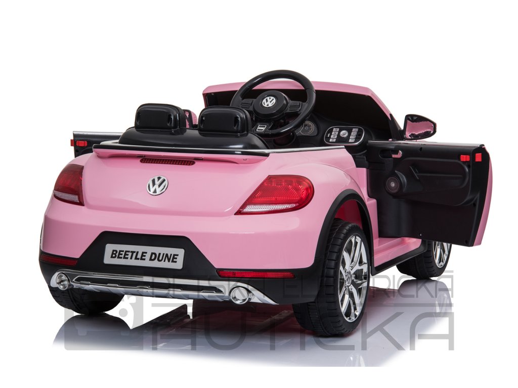 Úžasný licenční brouk cabrio, kterého jste si vždycky přáli! Elektrické dětské autíčko Volkswagen Beetle Dune cabrio s 2,4G dálkovým ovládáním přináší pohodlnou jízdu, skvělé LED světelné i zvukové efekty a spoustu dalších vychytávek, samozřejmostí jsou otevírací dveře.