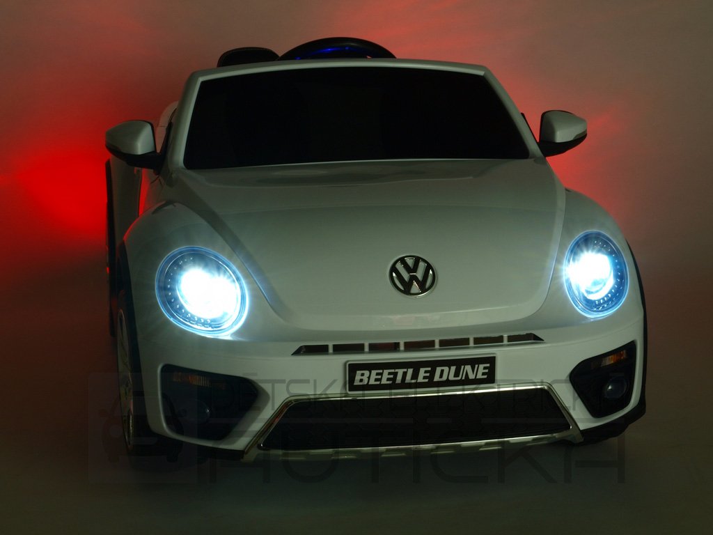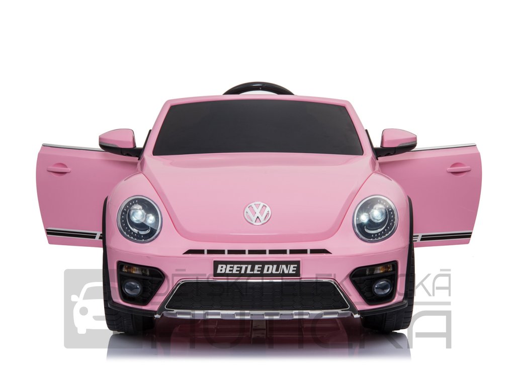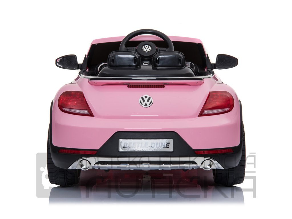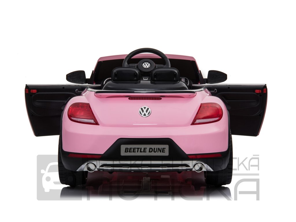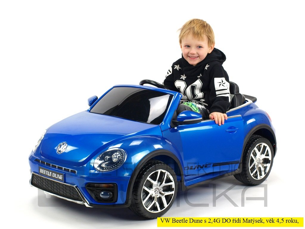 Úžasný licenční brouk cabrio, kterého jste si vždycky přáli! Elektrické dětské autíčko Volkswagen Beetle Dune cabrio s 2,4G dálkovým ovládáním přináší pohodlnou jízdu, skvělé LED světelné i zvukové efekty a spoustu dalších vychytávek, samozřejmostí jsou otevírací dveře.