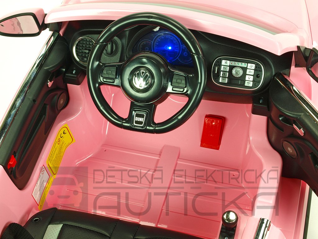 Beetle skvěle zvládá plynulé rozjezdy, po zapnutí auta zazní start a zvuk motoru, poté se rozsvítí palubní deska, na které můžete ovládat rychlost jízdy, FM rádio, továrně nastavenou hudbu, rozsvícení nebo blikání předních i zadních světel, klakson na volantu a hlasitost zvukových efektů. Díky bluetooth můžete také digiplayer napojit na váš mobilní telefon, možnost využít také USB. Díky voltmetru můžete kontrolovat stav nabití baterie.
