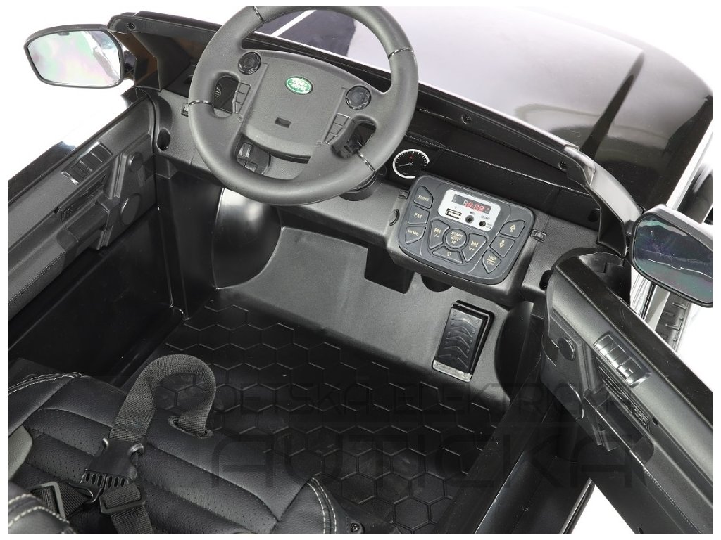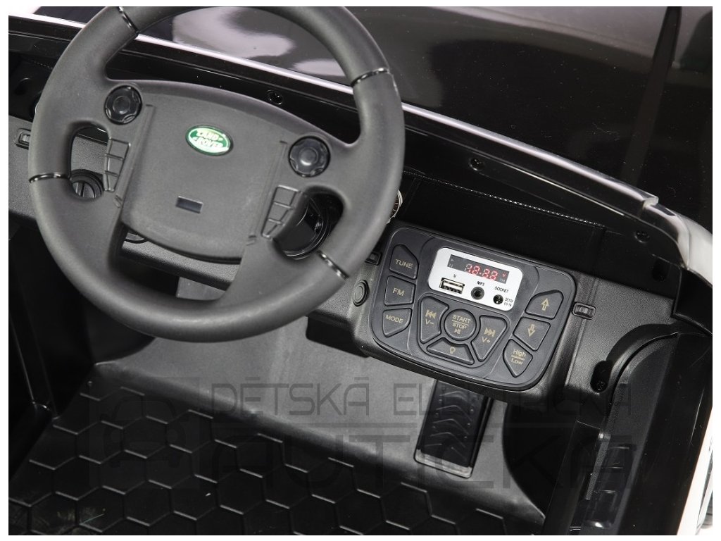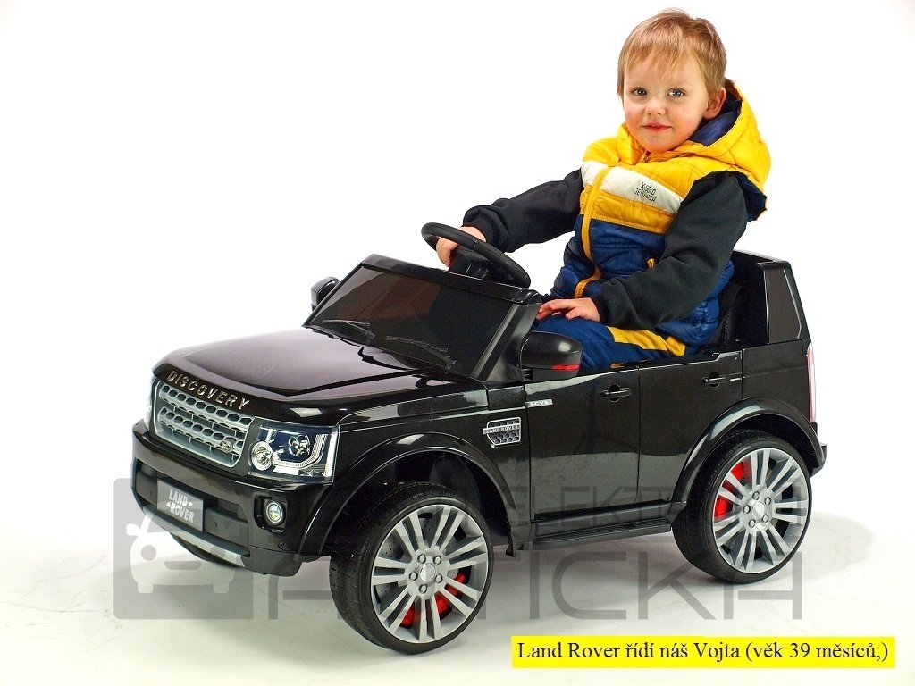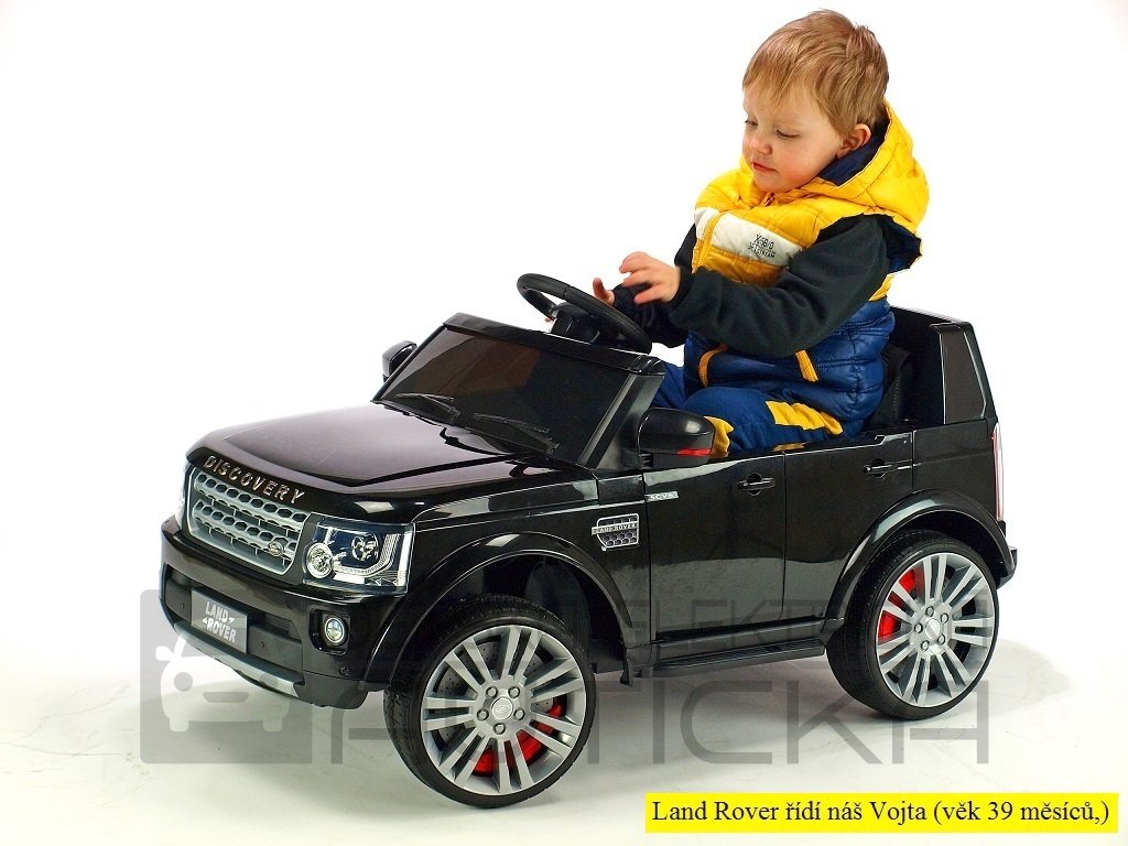 Krásné dětské elektrické autíčko Land Rover Discovery HSE v černé barvě má jedinečný vzhled SUV vozu a bohatou výbavu. Autíčko je vybaveno 2.4G bluetooth dálkovým ovládáním, které nabízí 3 rychlosti jízdy vpřed i vzad s přednostní jízdou nad pedálem tzn. dítě můžete ovladačem zastavit. Jízda na pedál pak nabízí 2 rychlosti vpřed a vzad. Při nesešlápnutém pedálu tah motoru nahrazuje brzdu, při jízdě na DO brzdíte ovladačem.