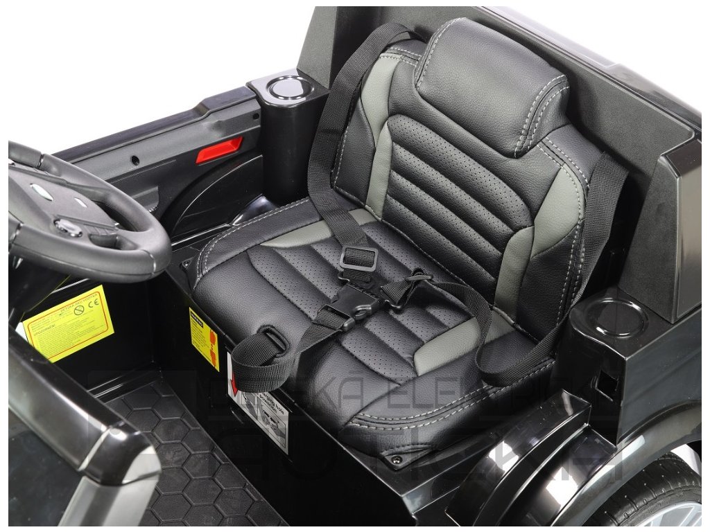 Vozítko má otevíratelné dveře a kapotu, kde najdete úložný prostor. O pohon se starají dva silné elektrické motory o výkonu 45W / 12V a baterie 12V / 7Ah. Pohodlnou a příjemnou jízdu zajistí krom čalouněné sedačky s 3 bodovým bezpečnostním pásem, EVA kola, vyráběné z měkčeného plastu, díky kterým můžete zdolat i jízdu v lehčím terénu. S terénem také pomůže odpružení přední a zadní nápravy.