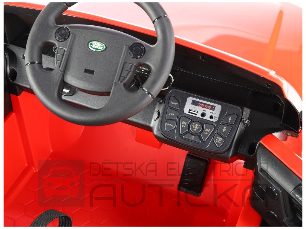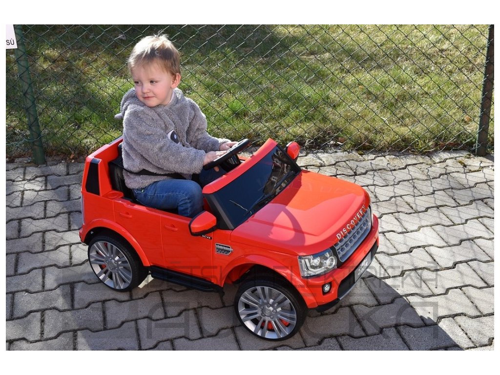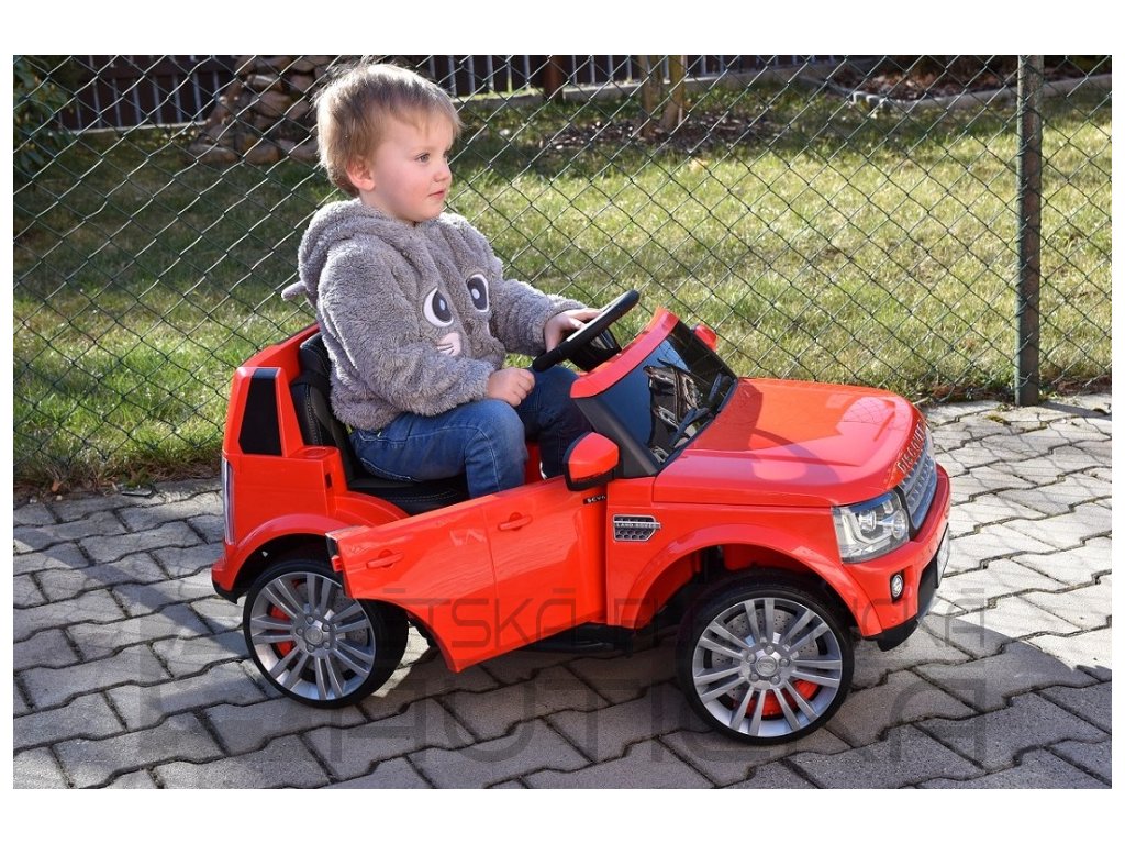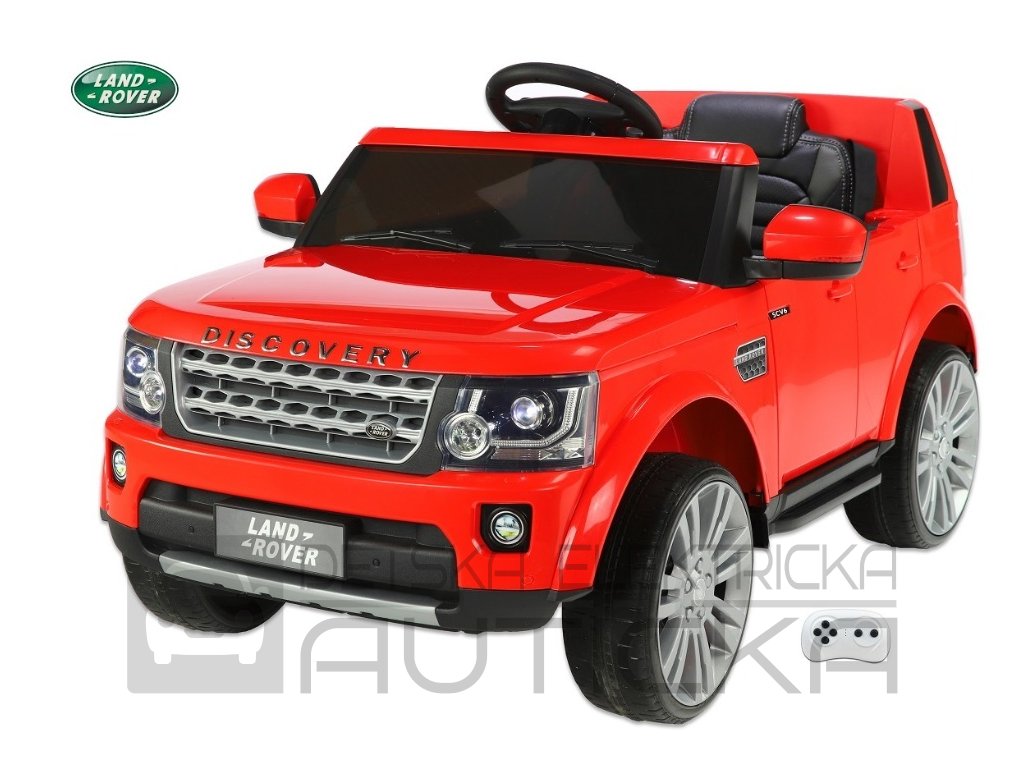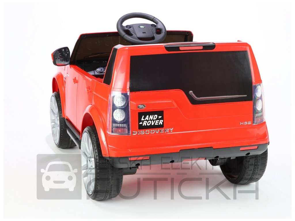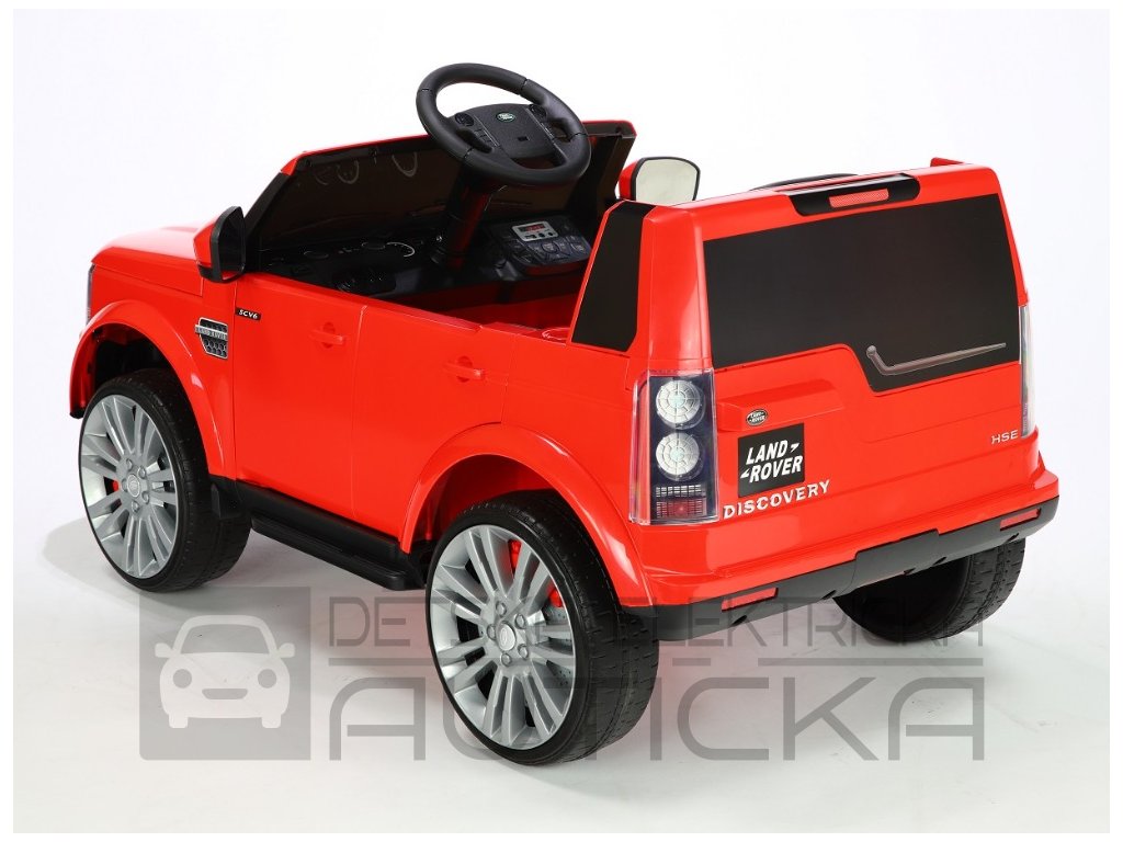 Krásné dětské elektrické autíčko Land Rover Discovery HSE v červené barvě má jedinečný vzhled SUV vozu a bohatou výbavu. Autíčko je vybaveno 2.4G bluetooth dálkovým ovládáním, které nabízí 3 rychlosti jízdy vpřed i vzad s přednostní jízdou nad pedálem tzn. dítě můžete ovladačem zastavit. Jízda na pedál pak nabízí 2 rychlosti vpřed a vzad. Při nesešlápnutém pedálu tah motoru nahrazuje brzdu, při jízdě na DO brzdíte ovladačem.