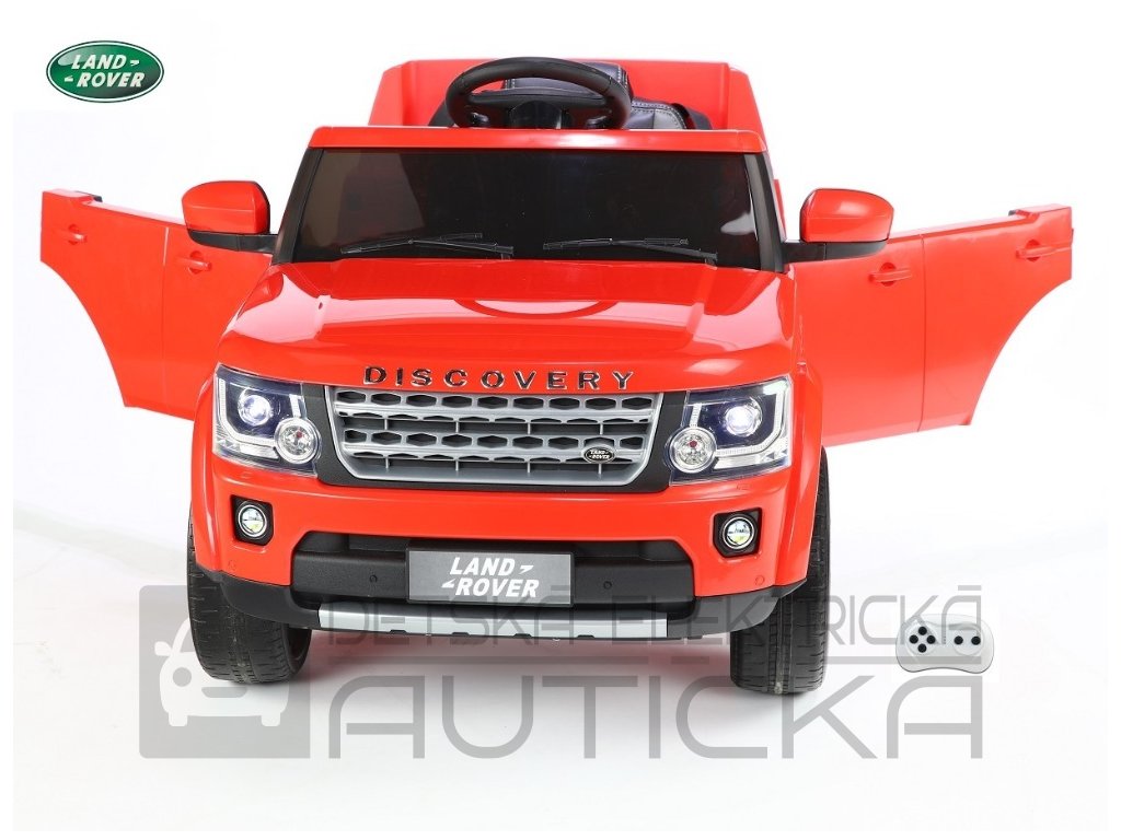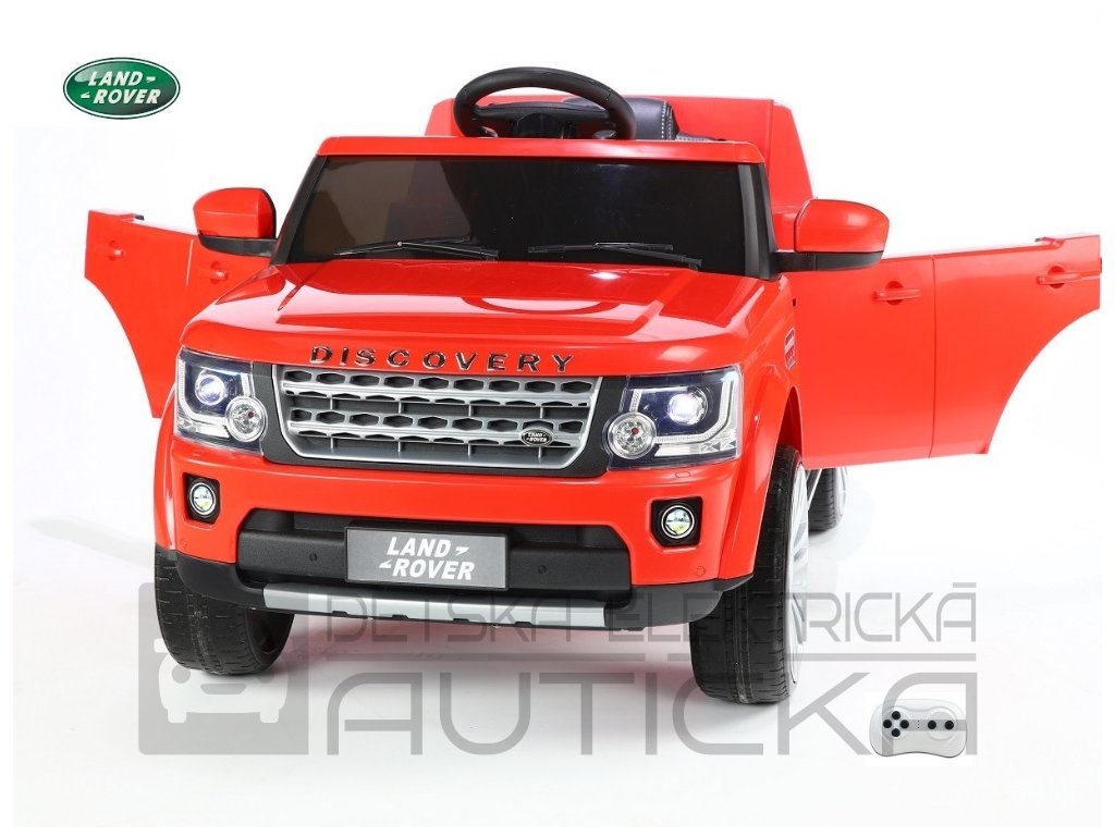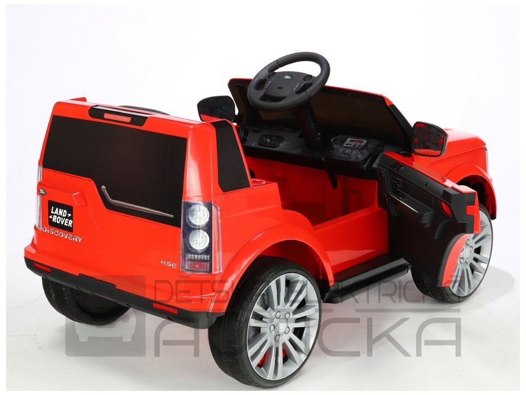 Elektrické autíčko Land Rover Discovery HSE s 2,4G DO, otevíratelnými dveřmi, MP3, FM, LED osvětlením, EVA koly, červený