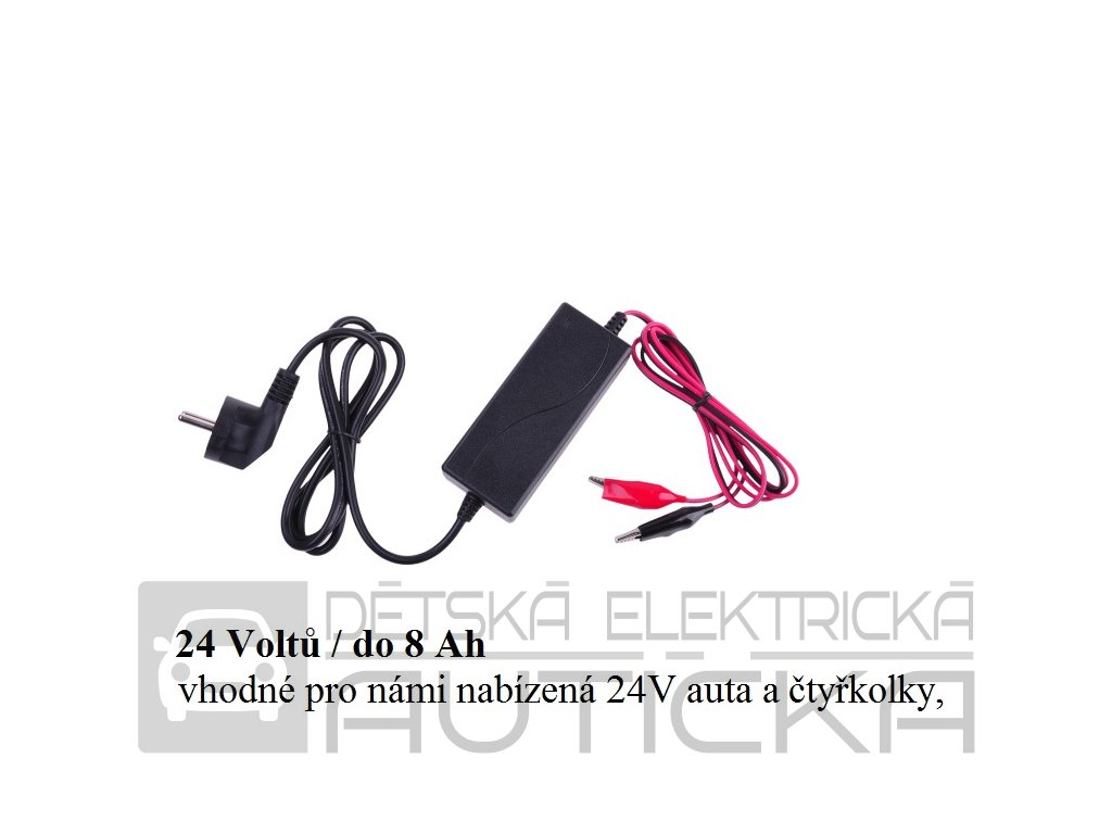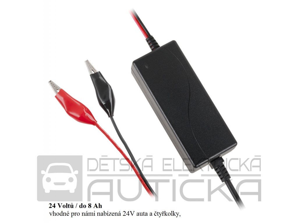 Nabíječka 24V baterií kapacity od 0.8Ah do 8Ah je určena pro gelový typ baterií. Nejvhodnější pro dětská elektrická autíčka a motorky.