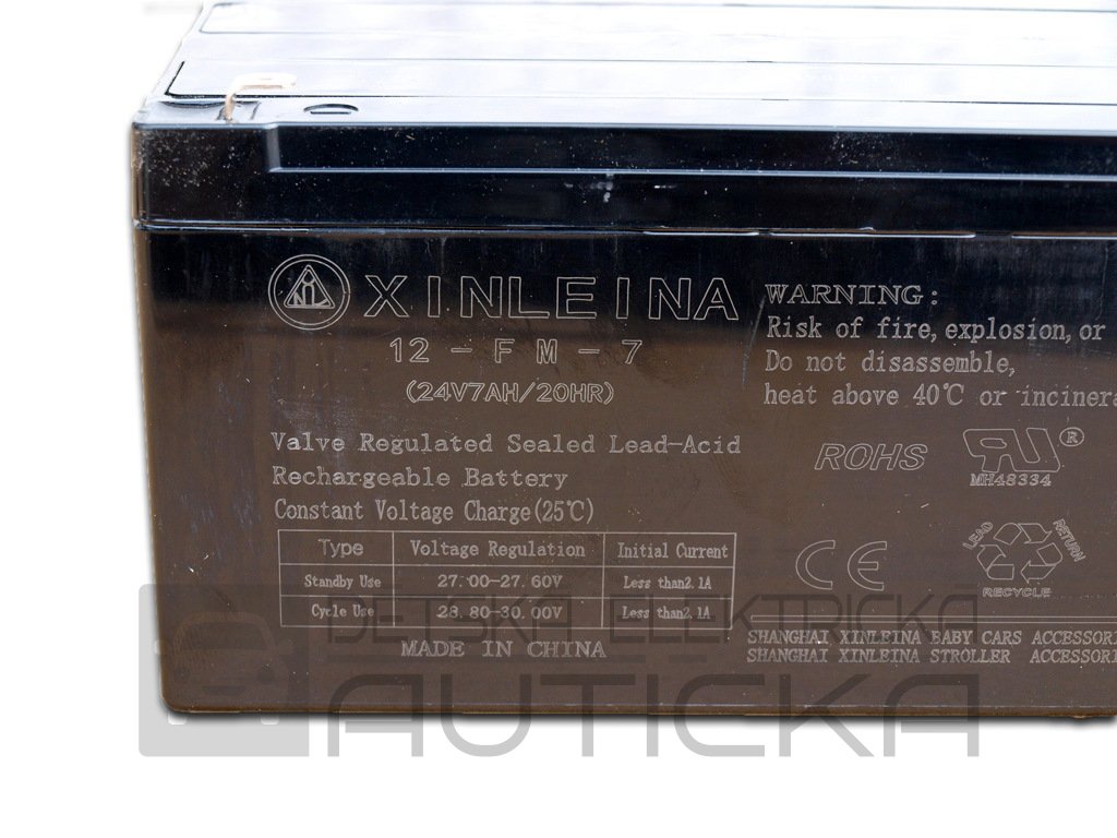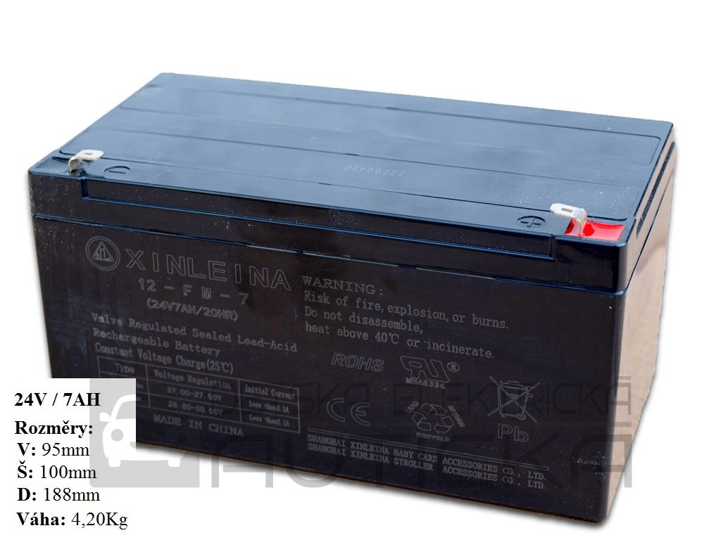 Olověná nabíjecí baterie pro elektrická autíčka 24V - 7Ah / 20HR, dlouhá