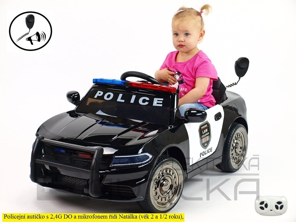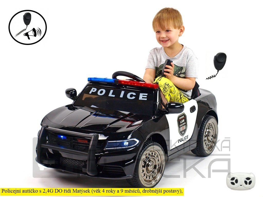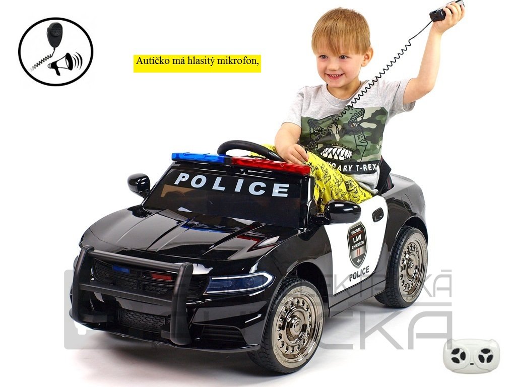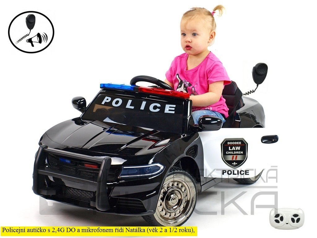 Elektrické autíčko USA policie střední s 2,4G DO, policejní sirénou, megafonem, MP3, LED osvětlením, EVA koly, černé