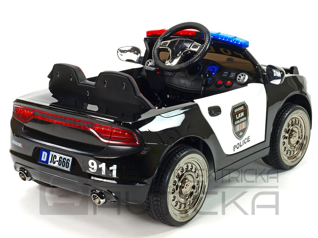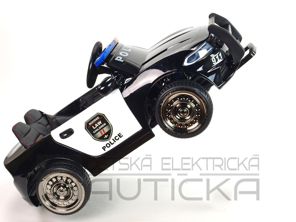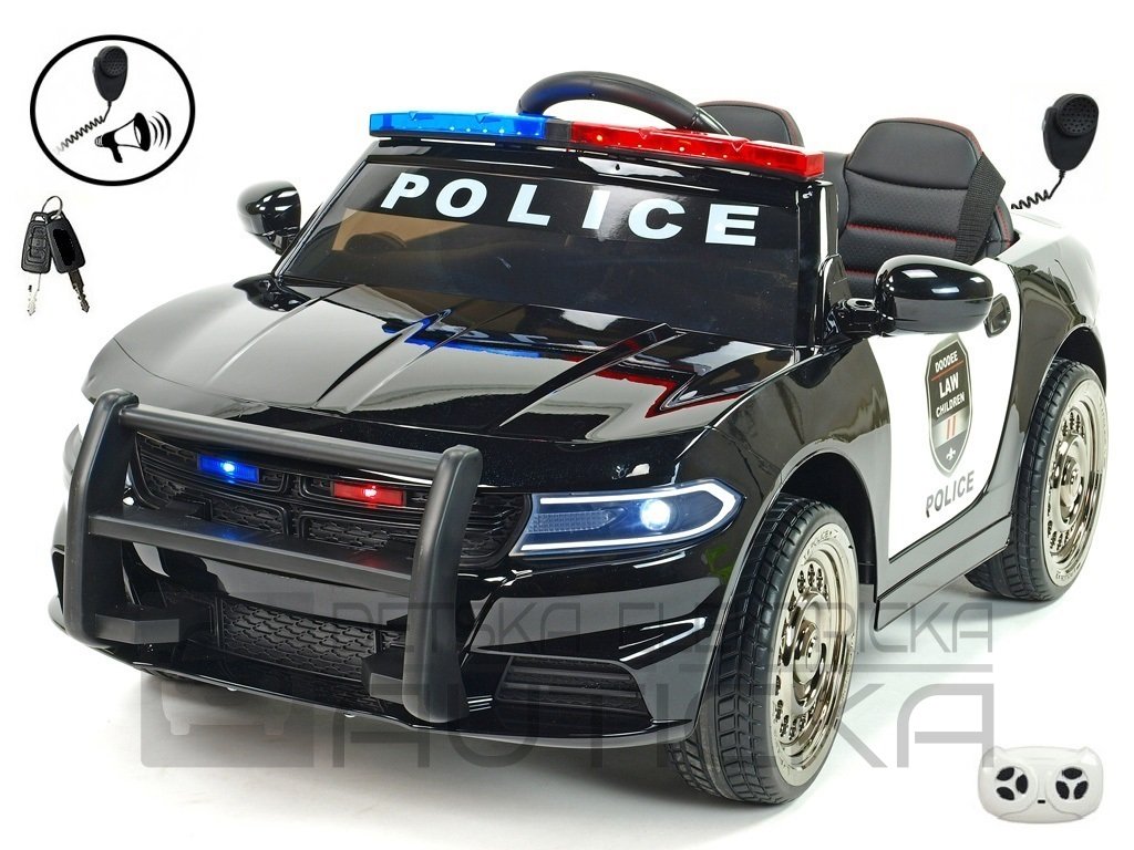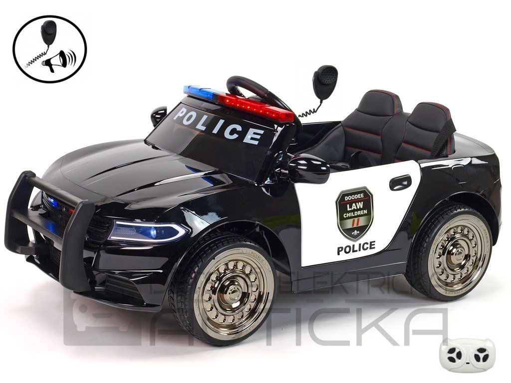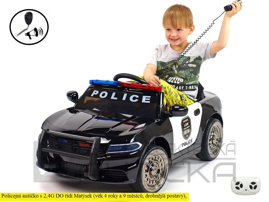 Elektrické autíčko USA policie střední s 2,4G DO, policejní sirénou, megafonem, MP3, LED osvětlením, EVA koly, černé